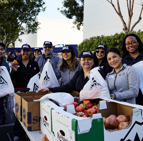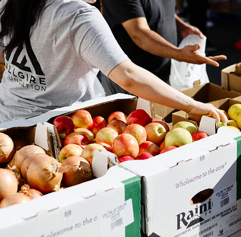 Spring Harvest is an annual event where the Allgire Foundation brings people together to assemble and deliver fresh food care packages to residents in affordable housing, helping fight food insecurity in the community